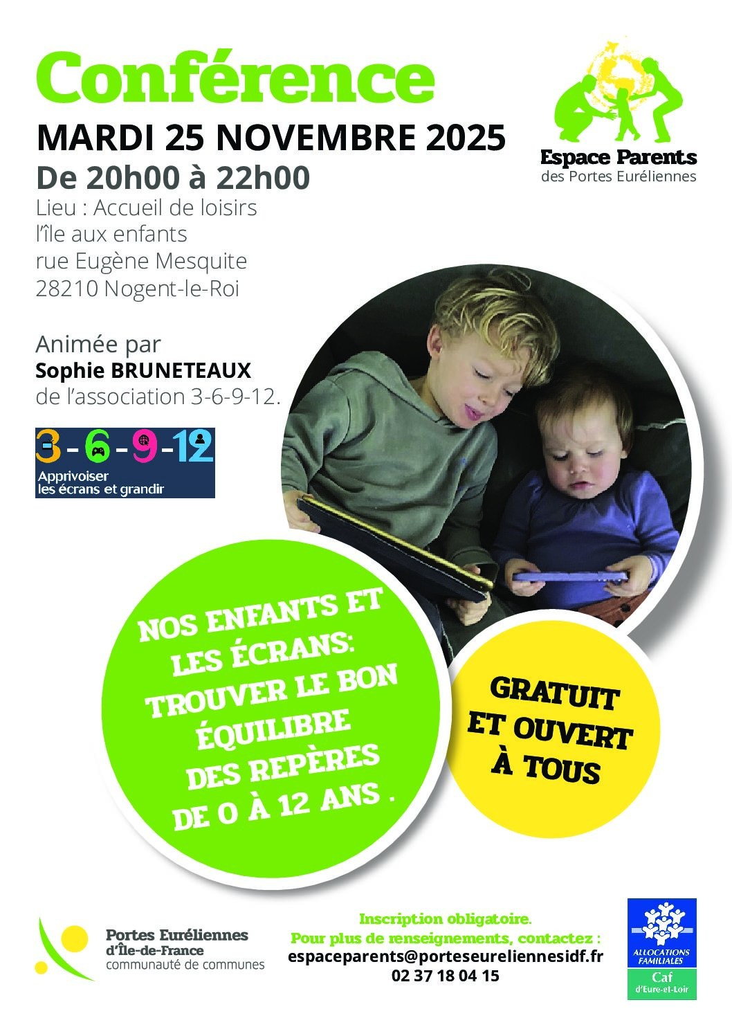 Conférence mardi 25 novembre de 20 h 00 à 22 h 00 – Accueil de loisirs Nogent-le-Roi